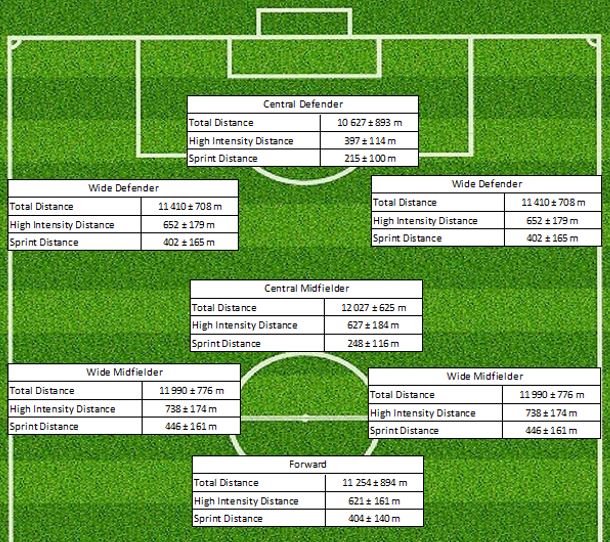 The table below shows the average values for total distance per match and VO2max for national teams in the 2010 and 2014 World Cup [37].