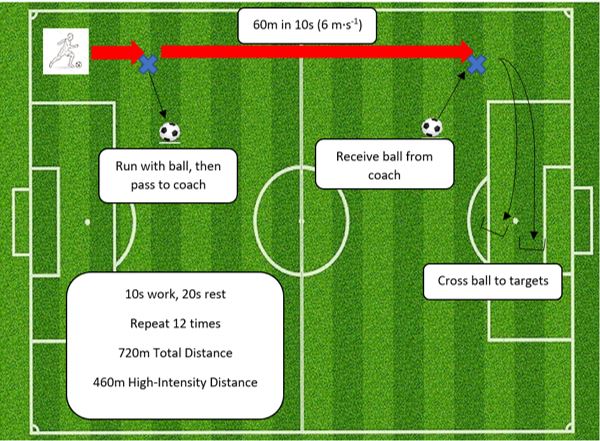 Conditioning runs are an effective way to overload match demands in training [5], and we can therefore give players position specific runs, such as those shown in the figure opposite, to replicate match demands.